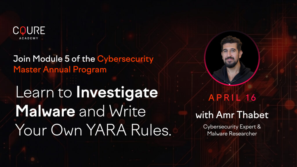 In Module 5 of the Cybersecurity Master Annual Program, “Malware Investigation & YARA Rules,” led by Amr Thabet (Cybersecurity Expert & Malware Researcher, and Author of the book “Mastering Malware Analysis”), you will learn to build the full workflow. From identifying indicators to writing custom YARA rules tuned for your specific environment, this is how you bridge the gap between detection and deep investigation. Join the 1-day course this Thursday, April 16: